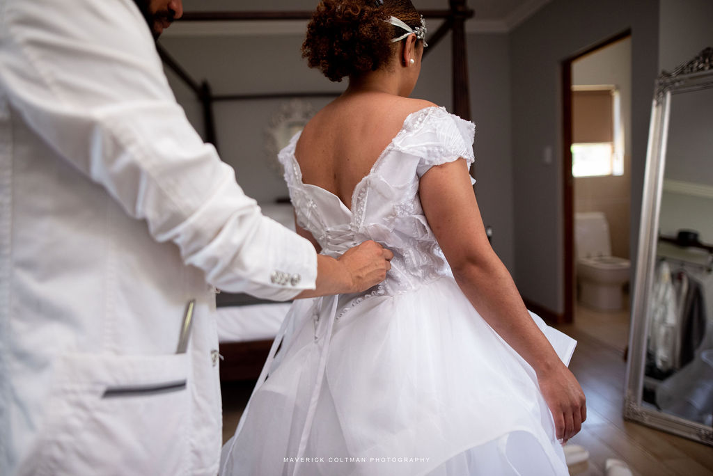 VENDORS: Photography – Maverick Coltman, Venue – Lombardini Game Farm & Venue, Make-up – Phila Make-up Artist, Wedding Dress – Carlos Fritz